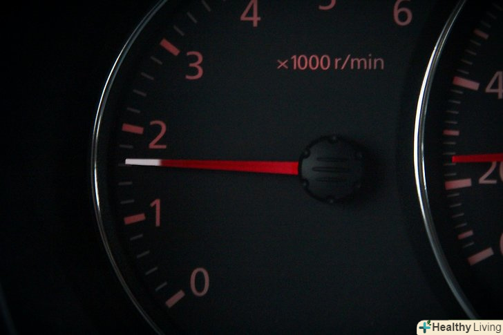 Натисніть на газ, щоб збільшити обороти двигуна; коробка все ще стоїть на нейтралі. Вам потрібно досягти оборотів, які б злегка перевищували значення, до якого розкрутився б двигун на зниженій передачі, яку ви збираєтеся включити. Так ви допоможете трансмісії, зрівнявши її обороти з оборотами двигуна.- Щоб зрозуміти цю думку, уявіть, що трапиться, якщо ви переключитеся з третьої на другу як зазвичай, з одноразовим жимом зчеплення. Обороти різко злетять, так? А ідея ось у чому: треба, щоб двигун розкрутився майже до таких же високих оборотів, які стануть після перемикання,ще до цього перемикання. Це сильно зменшить напругу елементів трансмісії і подовжить їй життя.