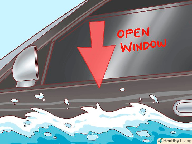 Відкрийте вікно, як тільки машина торкнулася води.на час забудьте про двері і спробуйте відкрити спочатку вікно. Оскільки Електроніка дверей діє протягом 3х хвилин після потрапляння у воду [10], буде розумним для початку випробувати цей шлях. Більшість людей забуває про це, піддавшись паніці, забувши про те, що вікно також можна використовувати в якості виходу, або просто наслухавшись невірних порад про те, що в такій ситуації двері не можна відкривати.[11]- Є кілька причин, чому вам потрібно забути про двері. По-перше, після того, як машина потрапила у воду, у вас є лише кілька секунд на їх відкриття. Після того, як машина почала тонути, у вас просто не вистачить сил зрушити двері з місця, поки зовнішнє і внутрішньо тиск не зрівняються; це означає, що салон машини повинен бути заповнений водою, а це навряд чи те, чого вам хотілося б[12][13] крім того, відкривши двері, ви серйозно зменшите час, який ваша машина зможе протриматися на плаву. Згідно з дослідженнями, в яких взяли участь 30 різних машин, всі вони здатні триматися на воді від 30 секунд до 2 хвилин. [14] замість того, щоб використовувати цей час для порятунку, відкривши двері ви просто затопите весь салон за 5-10 секунд.[15]