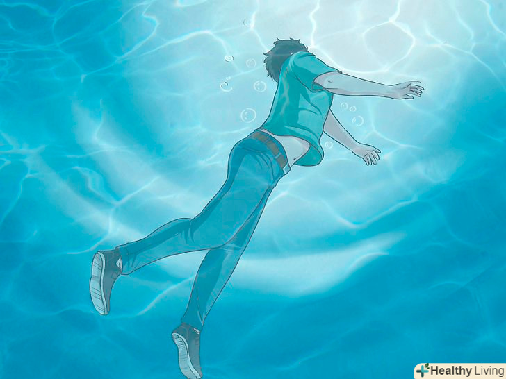 - Одяг і важкі предмети в кишенях будуть тягнути вас на дно. Будьте готові звільнитися від зайвого одягу і зняти взуття. Чим менше на вас буде речей, тим легше вам буде плисти. Навіть ваші джинси та нижня білизна можуть значно збільшити вашу вагу.