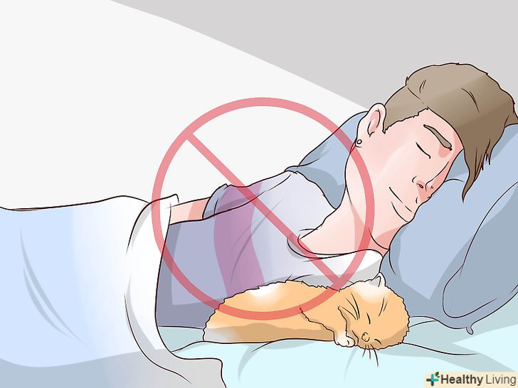 Не дозволяйте домашнім тваринам спати з вами в одному ліжку.оскільки чумна паличка найчастіше передається в результаті контактів з тваринами, краще не дозволяти вашим домашнім вихованцям спати в одному ліжку з вами, особливо якщо ви живете в лісистій місцевості або у Вашому регіоні були випадки захворювання чумою. Ваш вихованець міг контактувати з іншими зараженими тваринами або на нього могли потрапити блохи, при укусі яких чума передається людині.[15]- Необхідно регулярно перевіряти, чи не завелися у домашніх тварин блохи, кліщі та інші переносять захворювання паразити. Крім того, власникам домашніх тварин рекомендується використовувати препарати і масляні репеленти для того, щоб позбавити своїх вихованців від цих паразитів.[16]