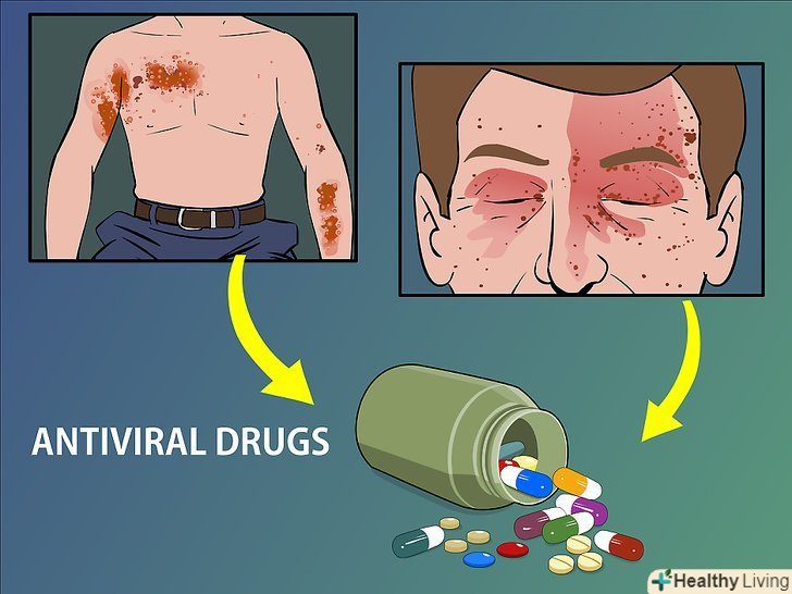 Поговоріть з лікарем про лікування висипу і зняття болю.більшість методів лікування оперізуючого лишаю не дуже складні. Вони включають в себе лікування висипу і зняття болю у пацієнта. Лікар може порекомендувати вамь наступне:- Противірусний препарат, такий як Ацикловір (»Зовіракс«), Валацикловір (»Валтрекс«), фамцикловір (»Фамвір"), щоб полегшити біль, що викликається висипом, і прискорити її проходження.