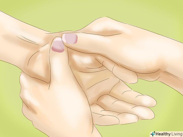 Зверніться до лікаря. якщо біль в зап'ясті триває довше тижня або носить гострий характер, запишіться на прийом до лікаря. Лікар може направити вас на рентгенівський знімок, щоб побачити, чи не викликана біль переломом, вивихом, інфекцією або артритом. Лікар може також призначити аналіз крові з метою виключити можливу інфекцію, подагру або запальні види артриту, такі як ревматоїдний артрит.- Перелом або вивих зап'ястя супроводжуються такими симптомами, як сильний біль, значне зменшення діапазону рухів, неприродна зігнутість зап'ястя, великий набряк і синяк. [8]