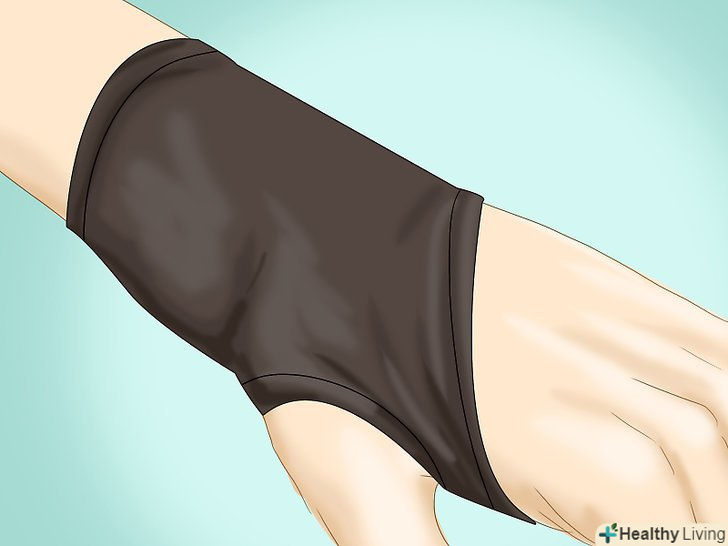 Носіть на зап'ясті бандаж. ще один корисний спосіб запобігти і полегшити різні види болю в зап'ясті полягає в тому, щоб носити спеціальні зап'ястні бандажі (підтримуючі пов'язки). [4] такі бандажі мають різні розміри, виготовляються з різних матеріалів і призначені для полегшення болю в зап'ясті. Залежно від вашої роботи і способу життя можна для початку використовувати досить вільний бандаж (наприклад, з неопрену), який майже не обмежує свободу рухів, на відміну від більш жорстких і фіксуючих варіантів.- Зап'ястні бандажі можна надягати лише в робочі дні або під час занять спортом.