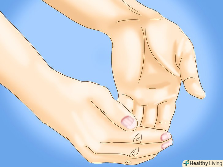 Виконуйте легкі розтягують і зміцнюють вправи. при відсутності перелому або сильного запалення щодня розминайте зап'ясті і ворушіть їм, щоб запобігти біль або швидше позбутися від неї. [7] розробляйте зап'ястя, підвищуйте гнучкість і силу зв'язок і сухожиль — це допоможе їм краще протистояти стомленню і зносу при роботі. При синдромі зап'ястного каналу розтягують вправи допоможуть зняти навантаження з серединного нерва, який приводить в рух м'язи долоні.- Для ефективної розтяжки зап'ястя складіть разом долоні, як при молитві. Потім підніміть лікті до тих пір, поки не відчуєте достатній натяг в зап'ястях. Потримайте руки в такому положенні 30 секунд. Виконуйте дану вправу 3-5 разів на день.