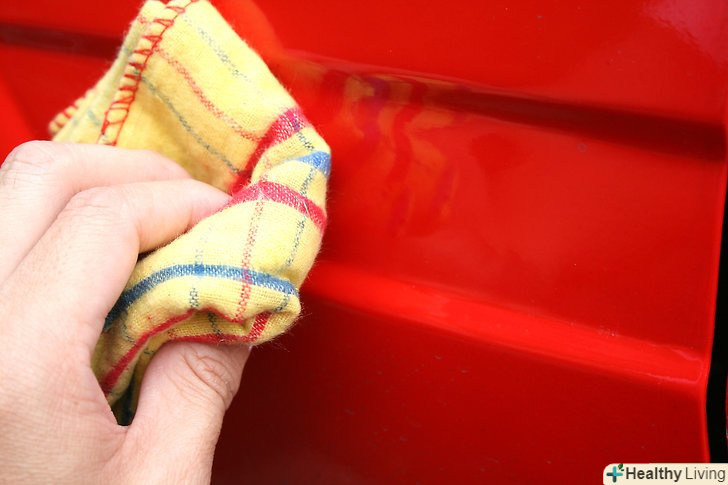 Візьміть розчинник клею і бавовняний рушник, щоб видалити залишився клей з поверхні авто.протестуйте розчинник на невеликій видимій ділянці, щоб переконатися, що його можна використовувати на пофарбованих поверхнях. Якщо його можна використовувати, налийте розчинник на рушник, а потім енергійно пройдіться по клею, щоб повністю видалити його з кузова авто.