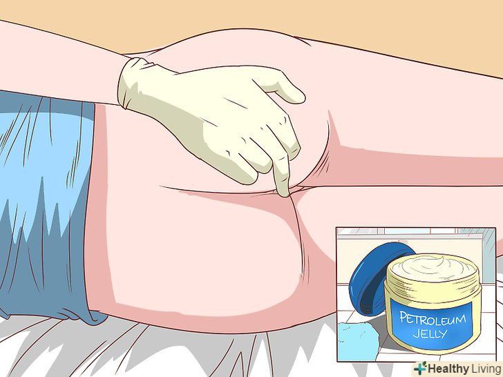 Змастіть область навколо ануса вазеліном.якщо ви змастите шкіру навколо ануса вазеліном, то свічку буде легше ввести. Можете використовувати вазелін або спеціальний крем, який вам призначить лікар. [3]