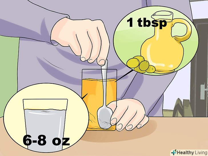Спробуйте використовувати оливкову олію.ця олія сприяє перистальтиці кишечника. Візьміть 180-240 мілілітрів води і розведіть в ній столову ложку (15 мілілітрів) оливкової олії. Додайте у воду сік одного свіжого лимона.[3]- Замість оливкової олії можна додати у воду столову ложку (15 мілілітрів) лляної олії.