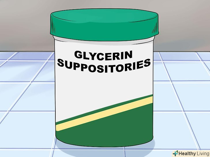 Використовуйте гліцеринові свічки.супозиторії (свічки) з гліцерином здатні дуже швидко допомогти при запорах. Гліцерин змащує стінки прямої кишки і полегшує проходження стільця. При використанні в якості свічок гліцерин має порівняно мало неприємних побічних ефектів.[4]- Користуйтеся гліцериновими свічками нечасто і лише при необхідності. Дотримуйтесь вказівок щодо застосування і пам'ятайте про те, що гліцеринові свічки діють лише протягом нетривалого часу.