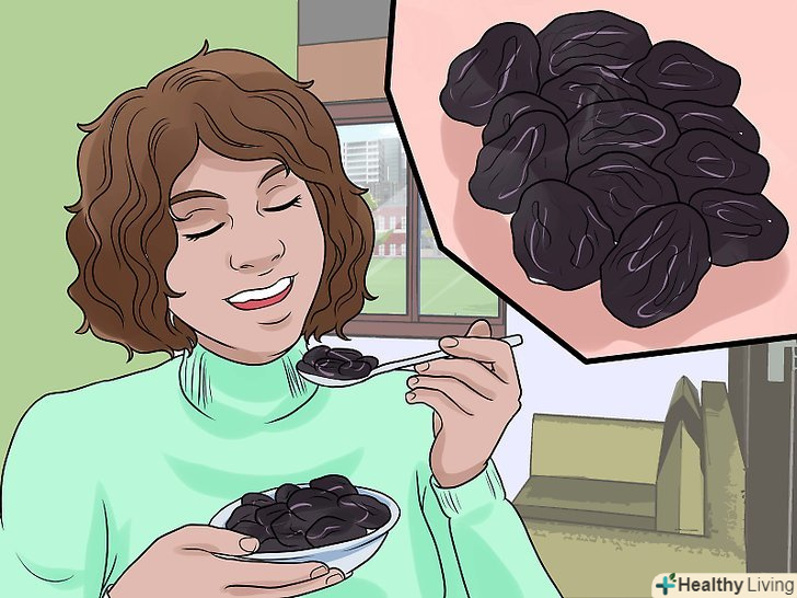 Їжте чорнослив. Спробуйте вживати чорнослив і сік з нього. Чорнослив сприяє регулярному стільця. Він надзвичайно багатий харчовими волокнами і містить сорбіт-сприяє спорожненню кишечника натуральний цукор, який допомагає при запорах. Сорбіт є м'яким стимулятором товстої кишки, він прискорює проходження стільця і знижує ризик запору.[8]- Якщо вам не подобається пом'ятий вигляд і своєрідний смак чорносливу, можна пити його сік. Сік чорносливу починає діяти протягом декількох годин, тому почекайте після першої порції, поки сік дійде до кишечника, перш ніж пити другий стакан, інакше може трапитися діарея.
