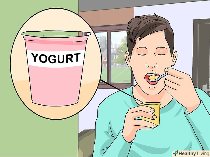 Вживайте пробіотики.це культури живих бактерій, які нормалізують роботу травного тракту і сприяють здоровому і регулярному стільця. Вважається, що пробіотики змінюють мікрофлору кишечника і знижують час засвоєння їжі і її проходження через травну систему. Пробіотики здатні полегшити запор і відновити регулярний стілець.[9]- Спробуйте з'їдати щодня склянку (близько 200 грамів) йогурту. При виборі йогурту вивчайте упаковку і стежте за тим, щоб в ньому містилися активні культури живих бактерій.