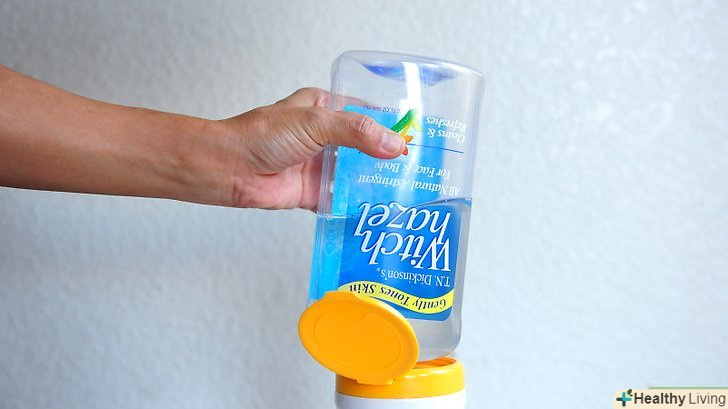 Вилийте весь вміст упаковки гамамелісу в контейнер з дитячими серветками.щоб переконатися, що всі серветки просочилися гамамелісом, розділіть деякі серветки і налийте засіб на них.