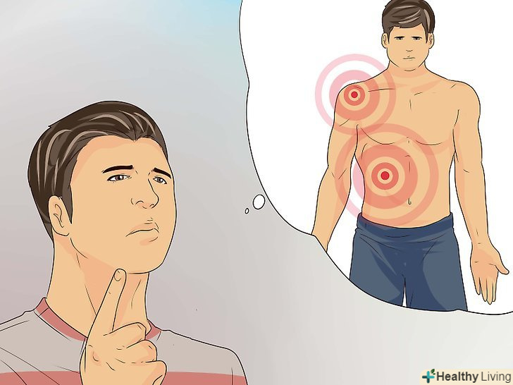 Зверніть увагу на больові відчуття.часто проблеми з жовчним міхуром проявляються у вигляді болю у верхній частині живота, що віддається в праве плече. Цей біль може бути постійною або періодичної, в залежності від конкретного захворювання жовчного міхура.[6]- Біль може посилюватися після прийняття жирної їжі.[7]