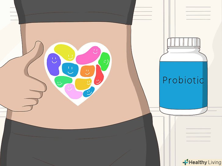 Приймайте пробіотики.пробіотичні препарати містять штами корисних бактерій, які в нормі заселяють товстий кишечник. Ці бактерії можуть загинути в результаті тривалого прийому антибіотиків, проносних препаратів, вживання алкоголю, попадання в організм важких металів і проходження колоноскопії. В результаті порушення балансу корисних кишкових бактерій з'являються проблеми з травленням і шлунково-кишкові симптоми. Якщо симптоми метеоризму викликані дисбалансом бактерій в кишечнику, то необхідно приймати пробіотичні препарати.[12] пробіотики не мають протипоказань. Їх можна купити в аптеках або магазинах здорового харчування.- Пробіотики продаються в таблетках, капсулах або порошках. Для того щоб підтримувати в товстому кишечнику необхідну концентрацію бактерій, важливо приймати пробіотики регулярно. У якій би формі ви не приймали пробіотик, він повинен бути покритий кишковорозчинною оболонкою або мікрокапсулою, які захищають бактерії від дії шлункової кислоти. Завдяки цьому пробіотик доходить до товстого кишечника в незміненому вигляді і вже там починає діяти.[13]