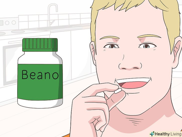 Рекомендується приймати фермент альфа-галактозидаза.Так як дуже часто причиною підвищеного газоутворення стають продукти, що містять складні сполуки цукру (нерозчинні волокна і олігосахариди), які організм не може переварити, рекомендується приймати безрецептурні препарати з альфа-галактозидазой (Beano, Suntaqzyme, Bean-zyme). Цей фермент розщеплює складні цукру, перш ніж вони досягають кишечника, де починається процес бродіння, допомагаючи уникнути підвищеного газоутворення і болю в животі. [11] приймайте альфа-галактозидазу перед тим як почати їсти продукти, що містять велику кількість клітковини (більшість овочів, фрукти і бобові).- Фермент є похідною харчової цвілі Aspergillus niger, тому може викликати алергічну реакцію у людей з підвищеною чутливістю до цвілі і пеніциліну.