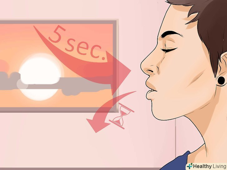 Практикуйте глибоке дихання .дихальні вправи дозволяють практично негайно заспокоїтися в різних стресових ситуаціях. Спробуйте глибоко дихати протягом дня, щоб зняти зайвий стрес.- Зосередьте свою увагу на діафрагмі — при глибокому вдиху вона повинна опуститися до живота.[16] під час вдиху повільно порахуйте до п'яти. Потім на кілька секунд затримайте дихання, після чого не поспішаючи видихніть повітря. Під час видиху також рахуйте до п'яти.