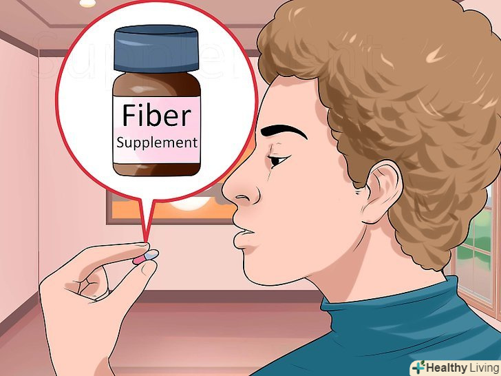 Приймайте добавки з харчовими волокнами.харчові волокна регулюють роботу кишечника і допомагають впоратися з симптомами СРК. Якщо у вашому раціоні недостатньо харчових волокон, можна приймати харчові добавки з ними, що дозволить полегшити симптоми СРК. Приймайте проносні засоби з наповнювачами - як правило, вони не викликають роздратування кишечника.[18]- Рекомендована добова доза харчових волокон становить 25-35 грамів. Якщо з їжею ви вживаєте меншу кількість волокон, можна компенсувати їх нестачу харчовими добавками.[19]