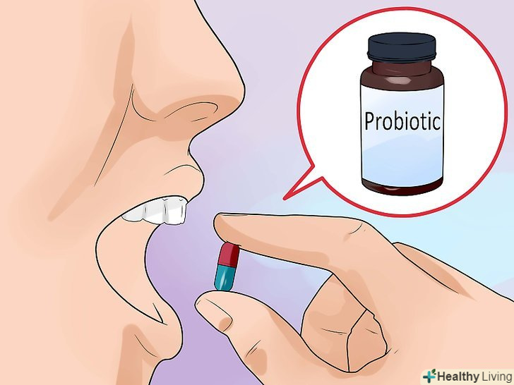 Приймайте добавки з пробіотиками.Пробіотики також здатні полегшити симптоми СРК. Харчові добавки з пробіотиками містять корисні бактерії, які допомагають нормалізувати травлення. Спробуйте приймати такі добавки протягом місяця і подивіться, чи покращиться ваш стан.[20][21]- Звичайна добова доза пробіотика становить 1-2 мільярди мікроорганізмів (колонієутворюючих одиниць, КУО). Дотримуйтесь інструкції по застосуванню.