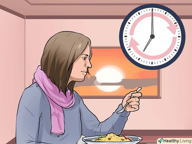 Регулярно їжте.нерегулярне харчування також може посилювати симптоми СРК, тому не пропускайте прийоми їжі і не робіть між ними великі перерви. Регулярно харчуйтеся і намагайтеся їсти протягом дня приблизно раз в три години.[7]- Крім того, не їжте багато за один раз. Великі порції також можуть загострювати симптоми СРК, тому намагайтеся їсти потроху 4-5 разів на день.[8]