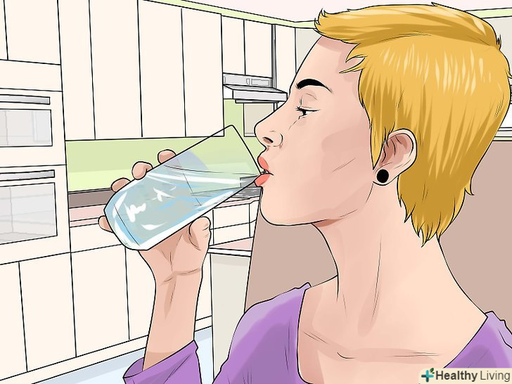 Пийте достатню кількість води.підтримка балансу рідини в організмі допомагає впоратися з деякими симптомами СРК. Намагайтеся щодня випивати близько 8 склянок (2 літрів) води. Можна пити ще більше в тому випадку, якщо ви займаєтеся спортом або ведете активний спосіб життя.[9]- Утримуйтеся від газованої води та інших газованих напоїв, так як вони можуть посилювати симптоми СРК.