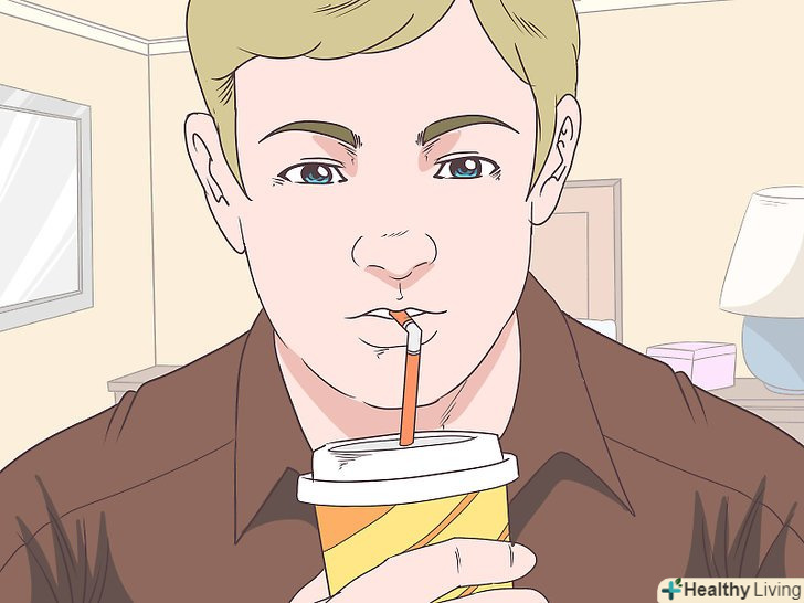 Пийте зі склянки, а не через соломинку.Соломинка сприяє заковтуванню більшої кількості повітря. Пийте не поспішаючи зі склянки - так вам буде легше контролювати кількість випитої рідини.[3]