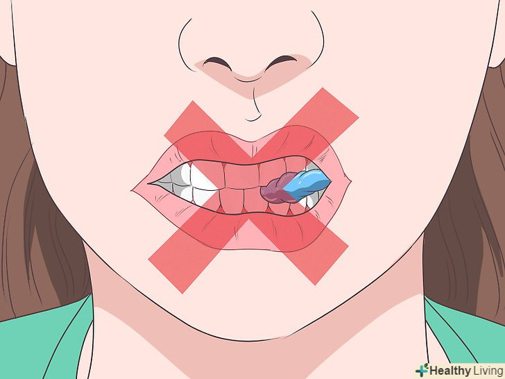 Утримуйтеся від жувальної гумки і твердих льодяників.від даних звичок буває непросто позбутися, проте це варто того. Коли ви смокчете льодяник, то час від часу відкриваєте рот, і в нього потрапляє додаткове повітря. Через нетривалий час це повітря може викликати відрижку або гикавку.[4]- Якщо вам дуже подобається жувальна гумка, то складно буде відмовитися від неї. Коли вам хочеться пожувати гумку або посмоктати льодяник, випийте замість цього склянку води. Це допоможе впоратися з даними бажанням.