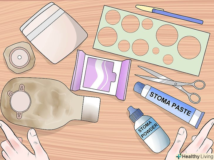 Придбайте все необхідне.перед випискою з лікарні медсестра напише список всього, що знадобиться вам для заміни калоприймача і розповість, де ви зможете купувати всі витратні матеріали. У багатьох магазинах медичних товарів ви зможете оформити доставку всієї необхідної продукції прямо додому.- Після виписки вам потрібно буде самому стежити за тим, щоб вчасно купувати все необхідне.