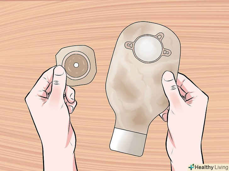 З'ясуйте, як часто вам необхідно міняти калоприймач.це індивідуально і залежить від того, який тип калоприймача ви використовуєте.[9] однокомпонентний калоприймач потрібно міняти кожен раз після заповнення. Якщо ж ви використовуєте двокомпонентний калоприймач, то сам мішок замінюють у міру необхідності, а фланець кожні два-три дні.- Неприпустимо носити один фланець довше семи днів.