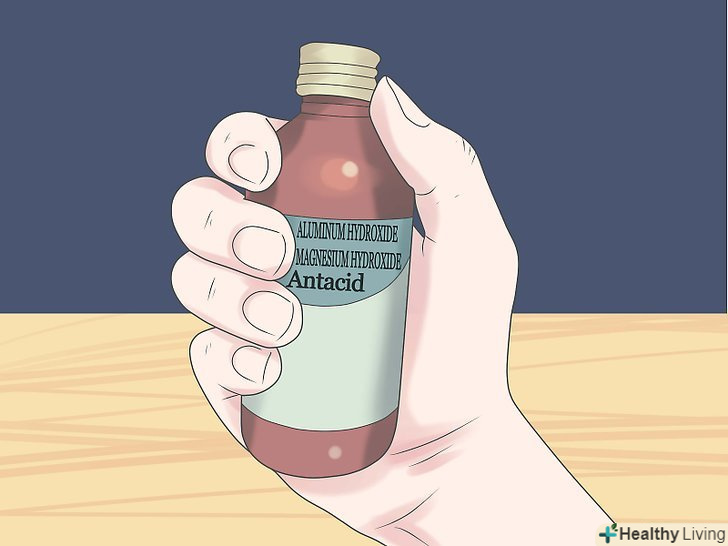 Подумайте про прийом антацидів для нейтралізації кислоти.гідроксид магній-алюмінію (рідина) та інші антациди нейтралізують соляну кислоту в шлунку і стравоході. Полегшення, супроводжуване почуттям м'якого охолодження, спостерігається вже при проходженні рідини через стравохід.- Добова доза антацидів-2-4 чайні ложки (10-20 мл), розділені на 4 прийоми. Найкраще приймати їх через 20-60 хвилин після їжі.[5]
