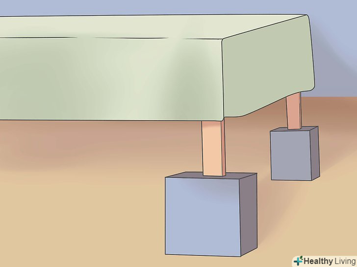- Якщо попередній спосіб не підходить, можете придбати пластиковий або дерев'яний підйомник для ліжка, що підтримує спинку або ніжки. Також можна придбати "ліжкові клини", що встановлюються між матрацом і матрацною пружиною або поверх матраца під постільну білизну.