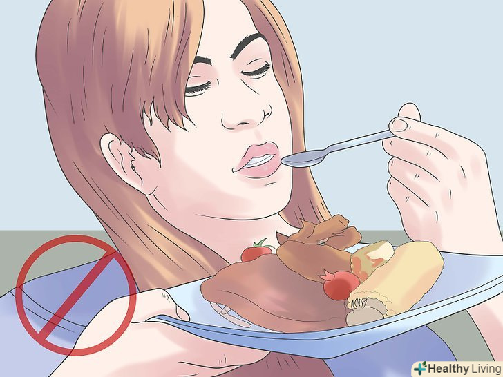 Контролюйте свою вагу.надмірна вага і ожиріння підвищують ймовірність ГЕРХ. Шлунок відчуває тиск відкладеного жиру, і підвищуються шанси, що його вміст вирветься в стравохід. У деяких випадках досить знизити вагу, щоб позбутися від ГЕРХ.[3]- Уникайте переїдання. Це дозволить одночасно контролювати вагу і зменшити ймовірність кислотного рефлюксу. Те ж кількість їжі краще розділити на невеликі порції, збільшивши кількість прийомів їжі, і шлунок не буде перевантажений.
