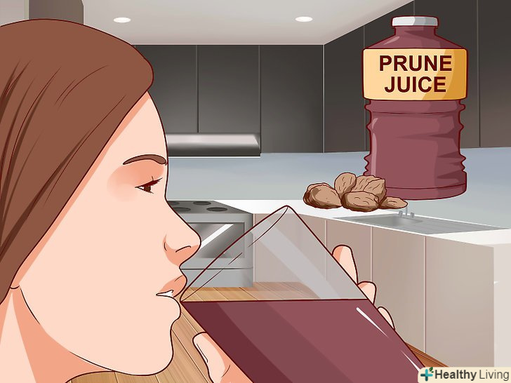 З'їжте чорнослив або випийте сливовий сік. Чорнослив відомий тим, що пом'якшує стілець. Якщо у вас вдома є ягоди чорносливу або сливовий сік, вживайте їх, щоб змусити ваш кишечник працювати.[4]- Не перестарайтеся. З'їжте кілька ягід чорносливу або випийте одну кухоль сливового соку.