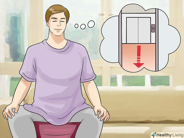 Розслабтеся, сидячи на унітазі.постарайтеся розслабитися і рівно дихати, сидячи у вбиральні. Не затримуйте дихання і не намагайтеся вдихнути побільше повітря, щоб потім напружитися. Один з методів полягає в тому, щоб уявити, що ваш задній прохід являє собою шахту ліфта. Спробуйте обережно спустити "ліфт" на другий поверх, потім ще нижче, постаравшись дійти до першого поверху.- На секунду розслабтеся, не дозволяючи, однак, ліфту знову піднятися вище.