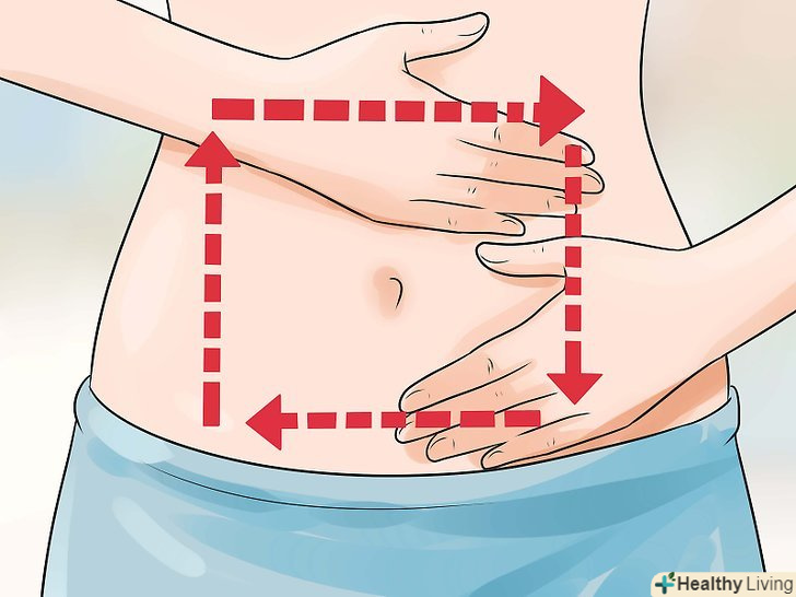 Запишіться на масаж живота або зробіть його собі самі.якщо ви страждаєте запорами протягом тривалого часу, вам може допомогти масаж живота. Він займає від 10 до 20 хвилин, і може бути зроблений в стоячому, сидячому або лежачому положенні. Масаж живота нерідко знижує потребу в проносних засобах, він також корисний при метеоризмі. Однак цей вид масажу рекомендується не всім пацієнтам, тому перш за все порадьтеся з лікарем.- Масаж живота не слід робити вагітним жінкам і людям, які перенесли кишкову непрохідність через злоякісні пухлини.[25]