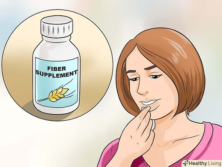 Приймайте харчові добавки з клітковиною.якщо ви намагаєтеся підвищити вміст харчових волокон в своєму повсякденному раціоні, можете приймати спеціальні добавки з харчовими волокнами. Їх можна придбати в аптеці або супермаркеті. Хоча такі добавки і можуть служити гарною підмогою при нетривалому вживанні, в довготривалій перспективі постарайтеся забезпечити достатню кількість харчових волокон за рахунок натуральних продуктів.[17]