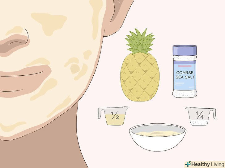 Використовуйте ананас і морську сіль.ананасовий сік можна наносити безпосередньо на родимку, але ви можете змішати півсклянки свіжого ананаса і чверть склянки грубої морської солі, щоб зробити фантастичний скраб для обличчя. Це може видалити верхні шари шкіри з родимки.