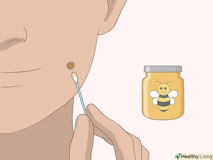 Спробуйте використовувати мед.мед добре відомий як смачні ласощі, але чи знаєте ви, що він також має антибактеріальні та лікувальні властивості? Нанесіть трохи меду безпосередньо на родимку в якості безпечного, природного засобу. При бажанні можете додати краплю заспокійливого, пом'якшує лляної олії.
