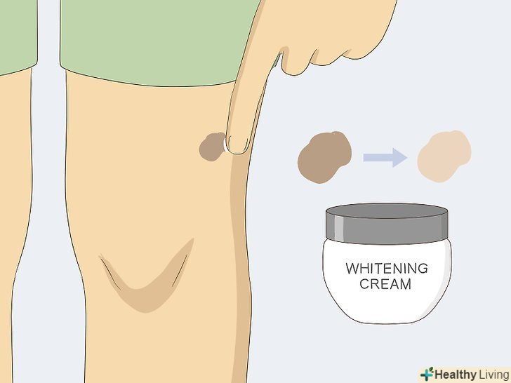 Спробуйте відбілюючий крем.відбілюючий крем загального призначення може зробити родимки менш помітними, хоча і не видалить їх. Він освітлить родимку, і вона буде менше кидатися в очі.