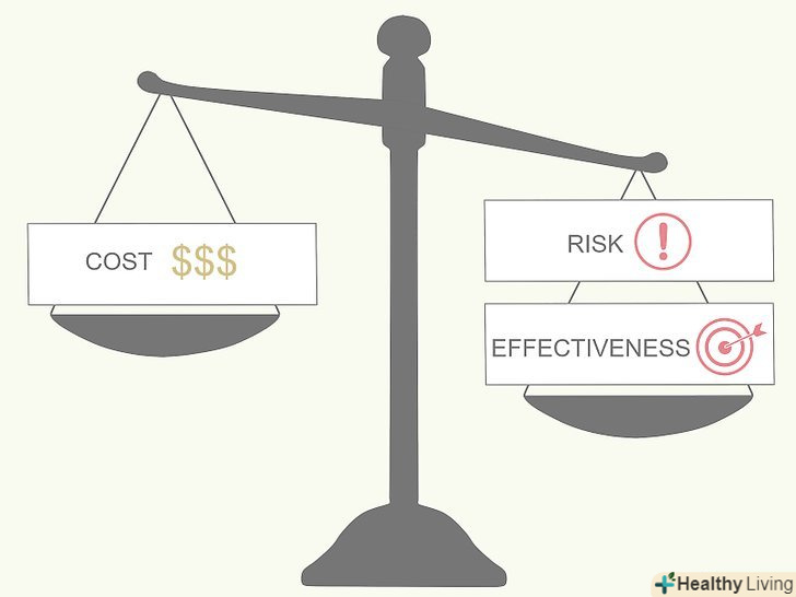 Зважте ваші варіанти.існує кілька способів видалення родимок, і вам слід вибрати найбільш підходящий для вас. Обміркуйте наступне:- Ефективність. Зважте ефективність кожного із способів. Чи видалить обрана вами процедура родимку повністю? Чи існує ризик, що вона може знову з'явитися?