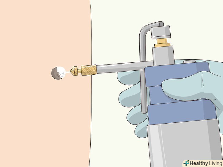 Розгляньте видалення за допомогою кріохірургії або заморожування.це альтернативний спосіб, при якому для видалення родимки використовується рідкий азот. Така процедура пропонується тільки в певних клініках.- Рідкий азот можна наносити на родимку безпосередньо ватним тампоном або за допомогою спрею.