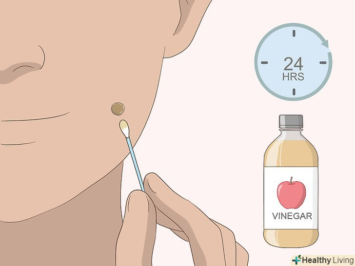 Спробуйте яблучний оцет.це чудотворний інгредієнт, який використовується в незліченній кількості самих різних домашніх засобів, який також є одним з найпопулярніших засобів для видалення родимок. Кислоти, що входять до складу оцту, яблучна і винна кислоти, насправді розчиняють родимку і повністю видаляють її зі шкіри. Просто нанесіть оцет безпосередньо на шкіру за допомогою ватного тампона або ватної палички.