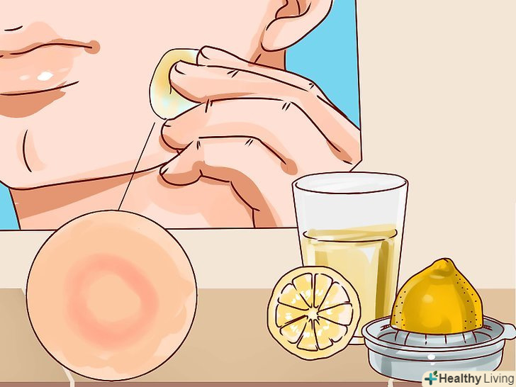 Нанесіть лимонний сік. нанесіть лимонний сік, щоб освітлити темні ділянки шрамів, залишених стригучим лишаєм. Вітамін С дуже важливий для процесу загоєння ран і допоможе зменшити розмір шраму.[2]- Занурте шматочок вати в сік і нанесіть його прямо на шрам.