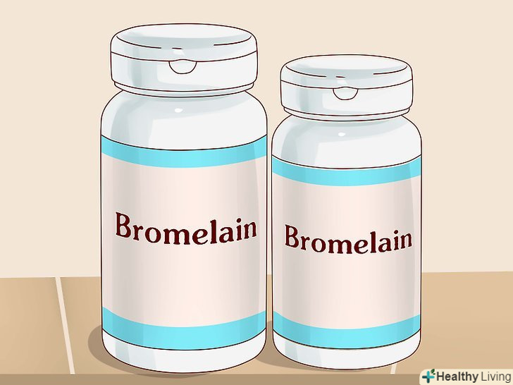 Почніть приймати бромелаїн.бромелаїн-це фермент, який отримують з ананасів. Щоб отримати користь від бромелаїну, його необхідно приймати як біодобавку. Проконсультуйтеся з лікарем з приводу прийому бромелаїну. Стандартна доза становить 500 мг. приймайте добавку натщесерце чотири рази на день.[14]