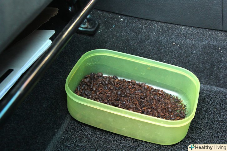 Використовуйте мелені кавові зерна для усунення неприємних запахів.мелена Кава зможе поглинути запахи, що виходять від старих плям молока, залишивши після себе приємний кавовий аромат, який замаскує залишки неприємного амбре.- Наповніть пластикові контейнери меленою кавою і поставте під крісла. Залиште їх там приблизно на два тижні.