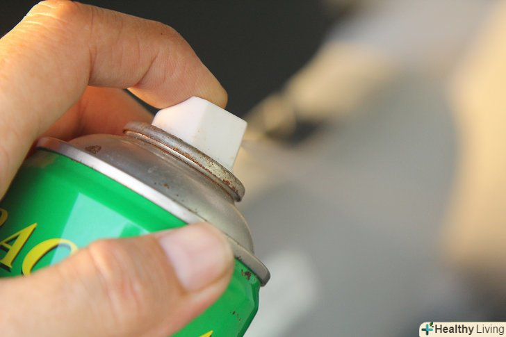 Спробуйте ферментний спрей.купуйте ферментний спрей в найближчому господарському магазині і нанесіть на пляму. Спрей допоможе розчинити пляму і залишить після себе приємний аромат.[6]- Залиште спрей на день-два, потім просто промокніть сухою ганчіркою.