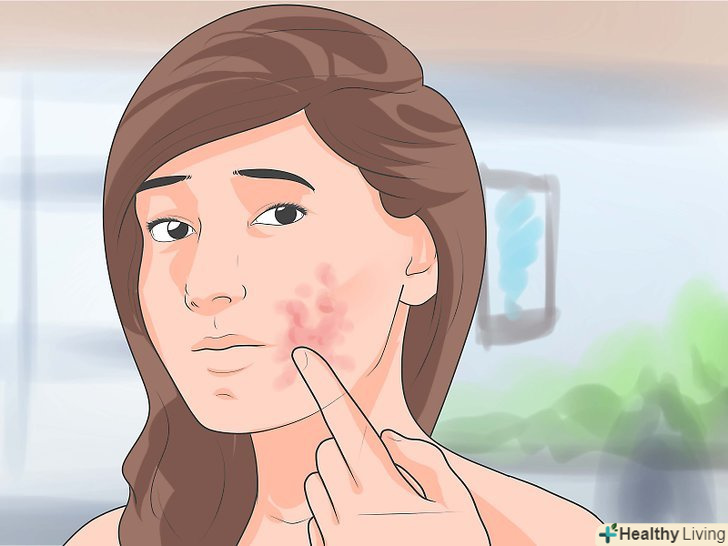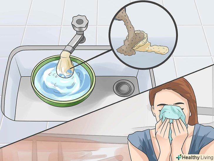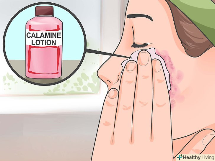 Втирайте в уражену висипом шкіру лосьйон.можна наносити на шкіру обличчя заспокійливий лосьйон. Наприклад, каламін Лосьйон допомагає зняти свербіж при кропивниці, і його можна наносити як завгодно часто. Після використання змивайте лосьйон прохолодною водою.[13]- Можна також наносити на шкіру вісмуту субсаліцилат (так званий "рожевий вісмут") або молочко магнезії за допомогою ватних кульок або паличок. Змочіть Вату рідким засобом і промокніть нею шкіру. Залиште засіб на шкірі на 5-10 хвилин, потім змийте його прохолодною водою.
