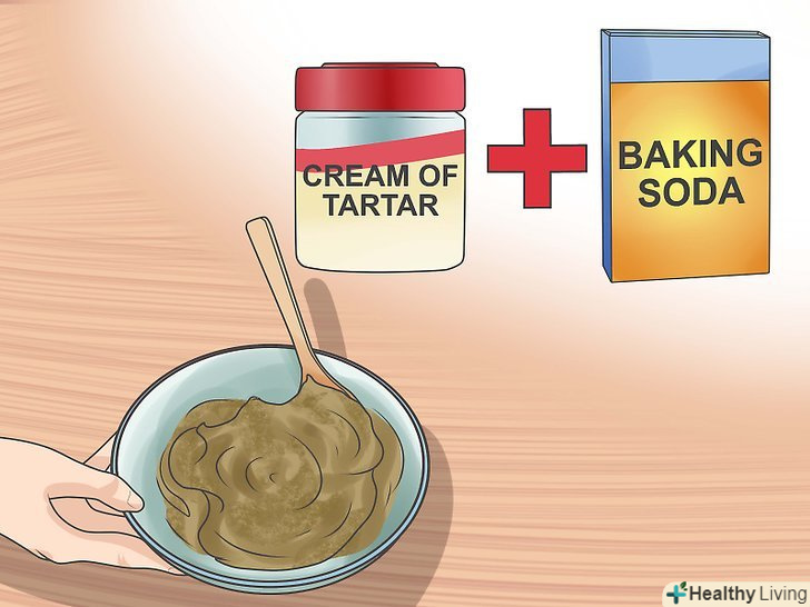 Приготуйте пасту.для полегшення кропив'янки на обличчі можна приготувати пасту з харчової соди або винного каменю (гідротартрату калію). Обидва цих інгредієнта мають в'яжучі властивості. При нанесенні на шкіру вони допомагають знизити алергічну реакцію, набряк і свербіж.[7]- Змішайте 1 столову ложку (близько 20 грамів) винного каменю або харчової соди з достатньою кількістю води, щоб вийшла пастоподібна маса. Нанесіть пасту на покриті висипом ділянки шкіри.