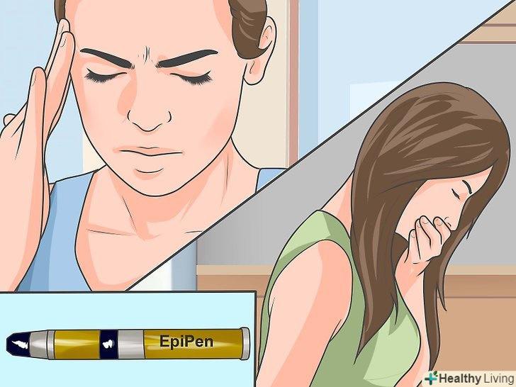 При сильній алергічній реакції використовуйте ін'єкції розчину епінефрину (адреналіну).у рідкісних випадках кропив'янка може викликати набряк горла, і в такій екстремальній ситуації може знадобитися розчин епінерфіну. При гострій алергічній реакції можна використовувати ін'єкції епінефрину (у вигляді гідрохлориду або тартрату) — це дозволяє запобігти анафілактичний шок, який може трапитися як при наявності кропив'янки, так і при її відсутності. Про анафілактичний шок свідчать наступні симптоми:[14]- Шкірний висип, в тому числі кропив'янка, яка може супроводжуватися свербінням, а також почервонінням або блідістю шкіри;