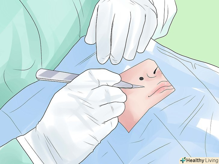 Можна видалити родимку за допомогою хірургічного втручання в стерильних умовах, щоб уникнути зараження організму і можливих ускладнень. Доктор иссечет родимку. Глибина надрізу може варіюватися в залежності від методів лікування.- Для висічення маленьких родимок буде достатньо місцевої анестезії, щоб ділянка шкіри втратила свою чутливість під час процедури.