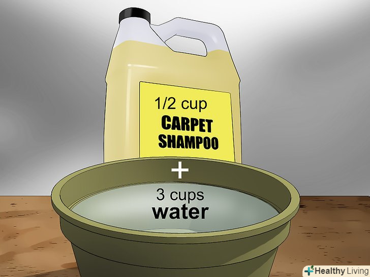 Приготуйте чистячий розчин, змішавши засіб для очищення килимів з водою.візьміть приблизно 720 мл (3 склянки) водопровідної води і 120 мл (півсклянки) миючого засобу. Перемішайте розчин до повного розчинення.[4]