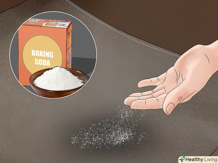 Насипте харчову соду.у деяких людей вийшло приховати запах сухою содою. Вони залишають соду на плямі, а потім змінюють її раз на місяць. Для цього вони прибирають стару соду пилососом і насипають новий шар.[10]- Замість соди можна використовувати дитячу присипку.